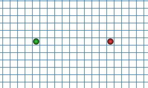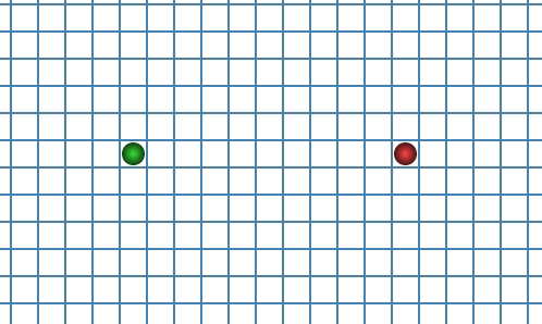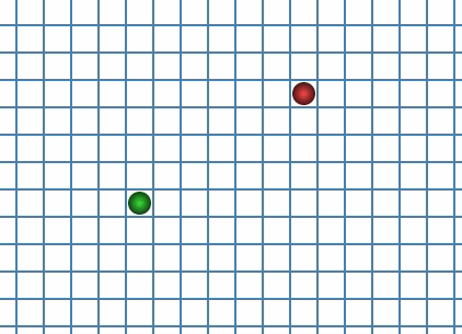The green sphere in the board indicates the start, whereas the red sphere indicates the target square. Each algorithm will try to find the shortest path connecting the start square to the target square.